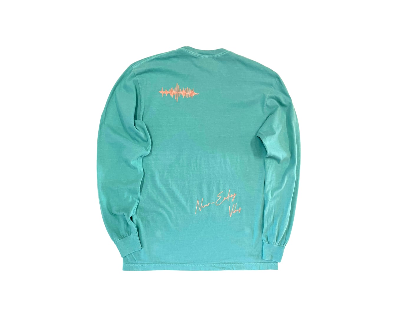 バックプリントには"NEVER ENDING VIBES"の文字と”波形”を入れてます。
