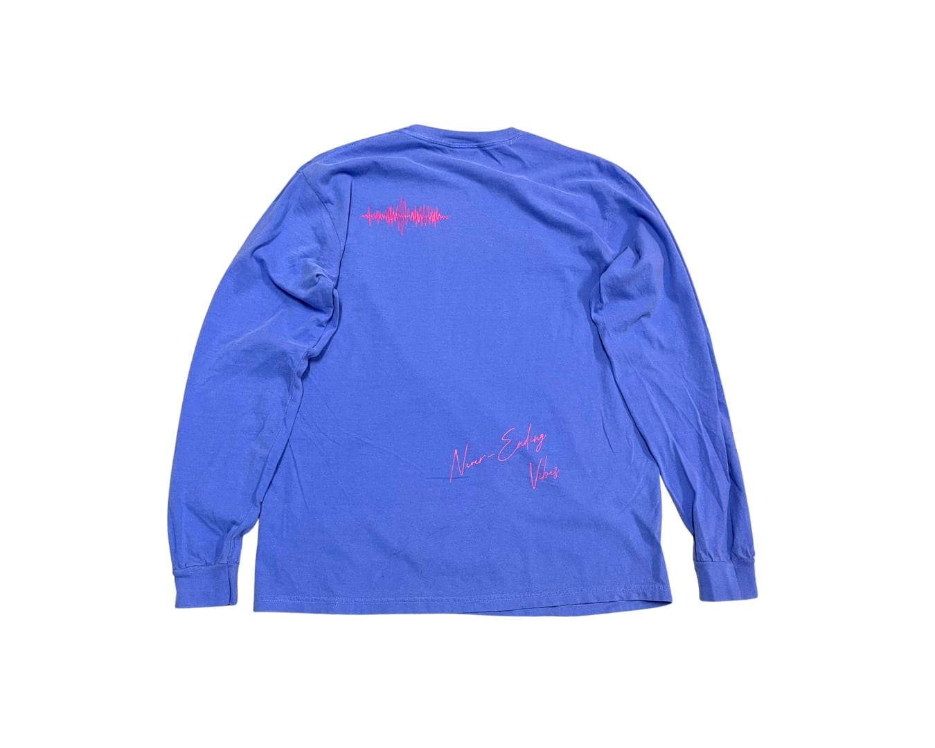 バックプリントには"NEVER ENDING VIBES"の文字と”波形”を入れてます。