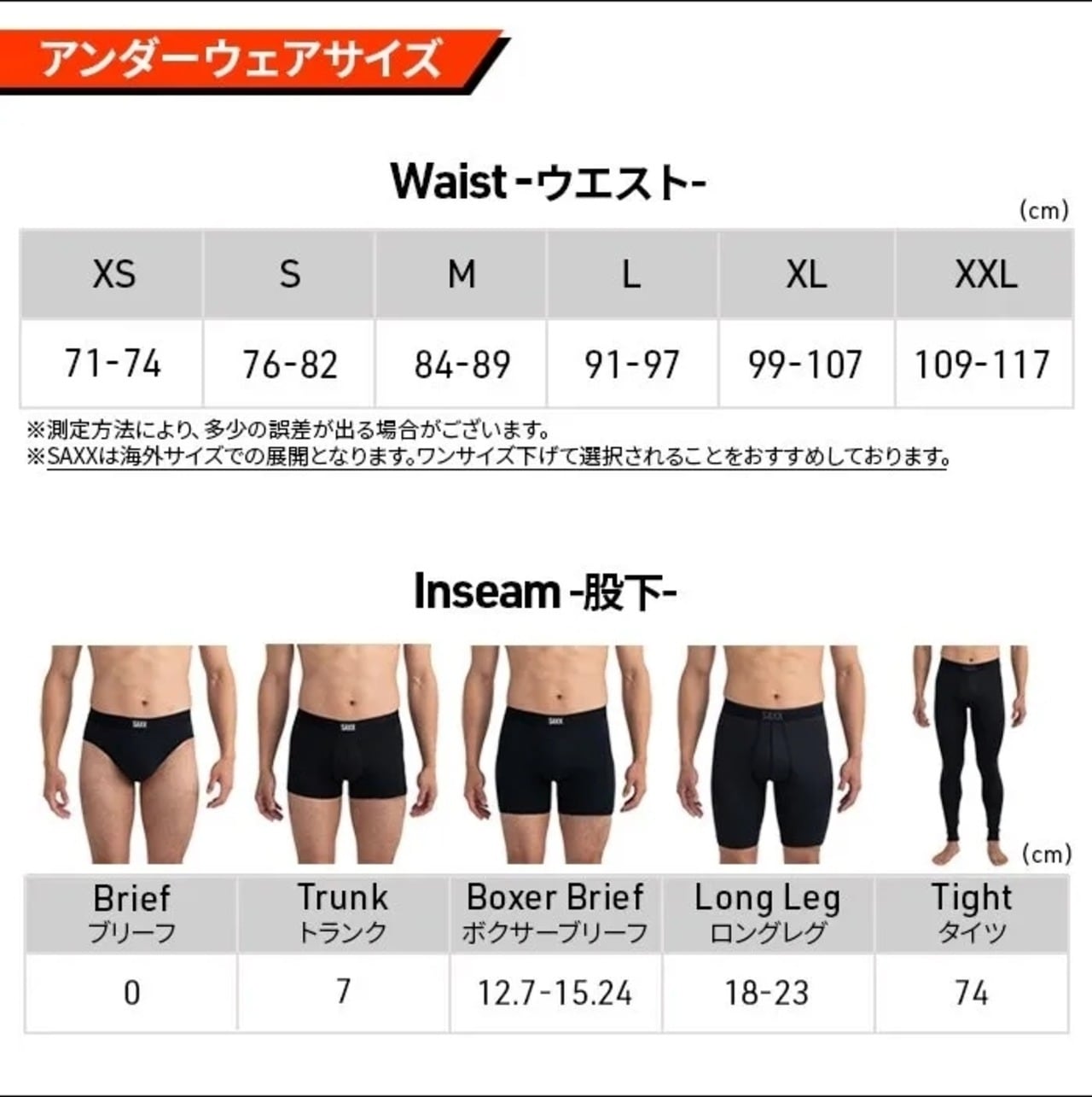 BOXER BRIEF:5inseam(股下:約12.7cm)