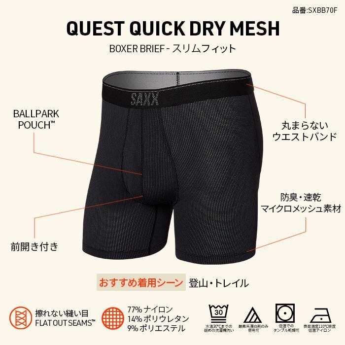 SAXX QUEST QUICK DRY MESH BOXER BRIEF FLY SXBB65F-PRM / サックス クエスト クイックドライメッシュ ボクサーブリーフ パンツ 前開き